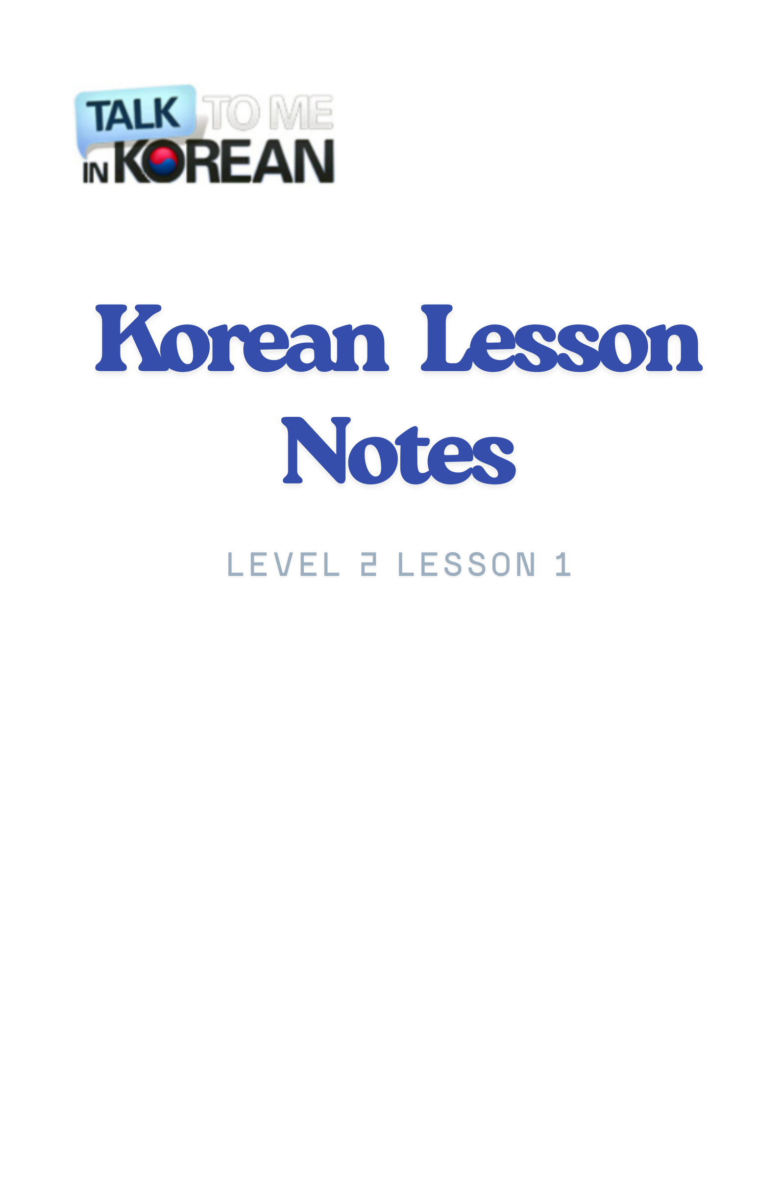 Korean Lesson Notes – Level 2