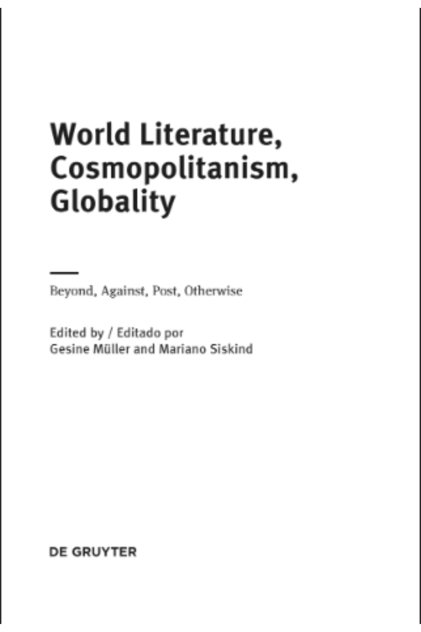 World Literature, Cosmopolitanism, Globality
