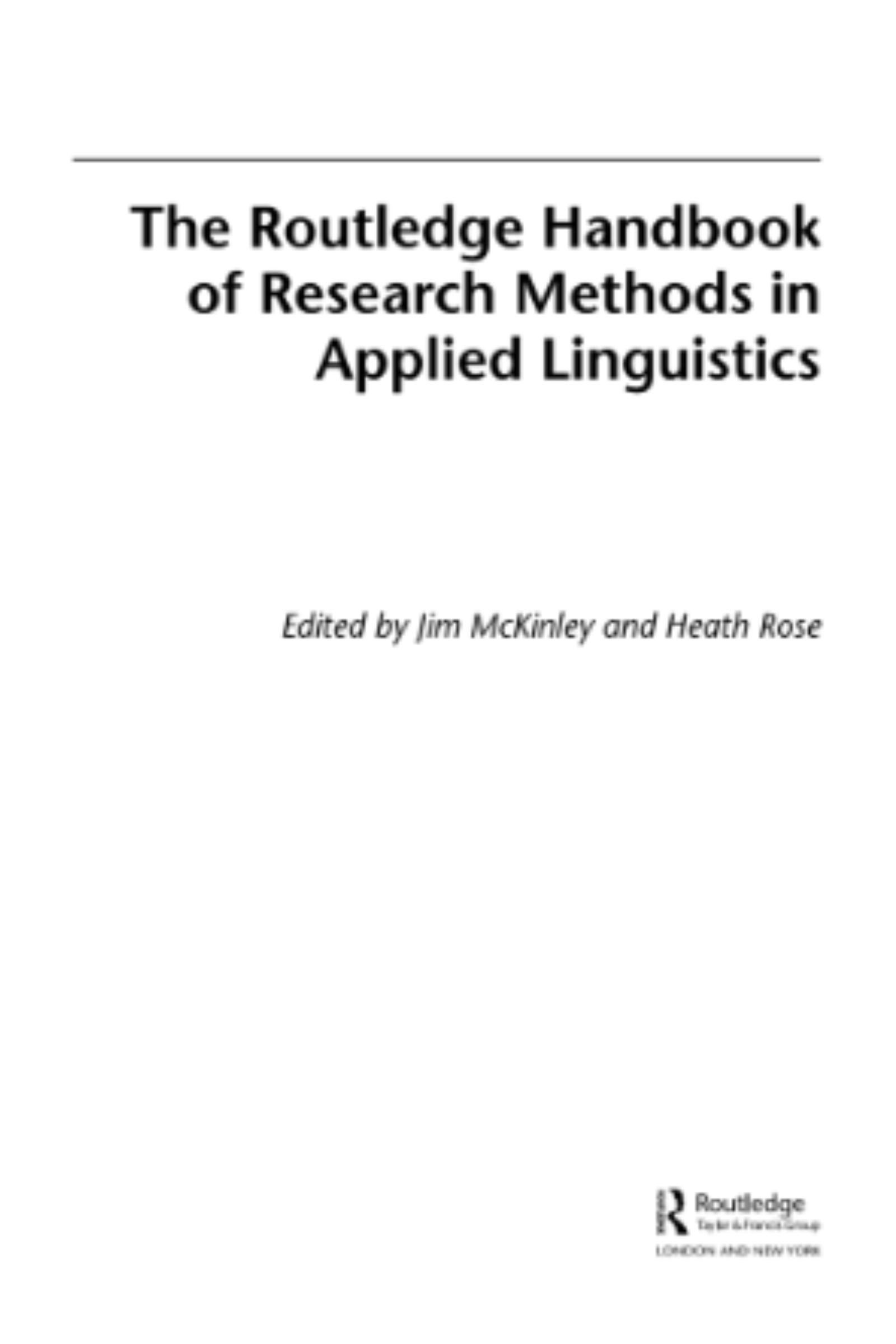 The Routledge Handbook of Research Methods in Applied Linguistics