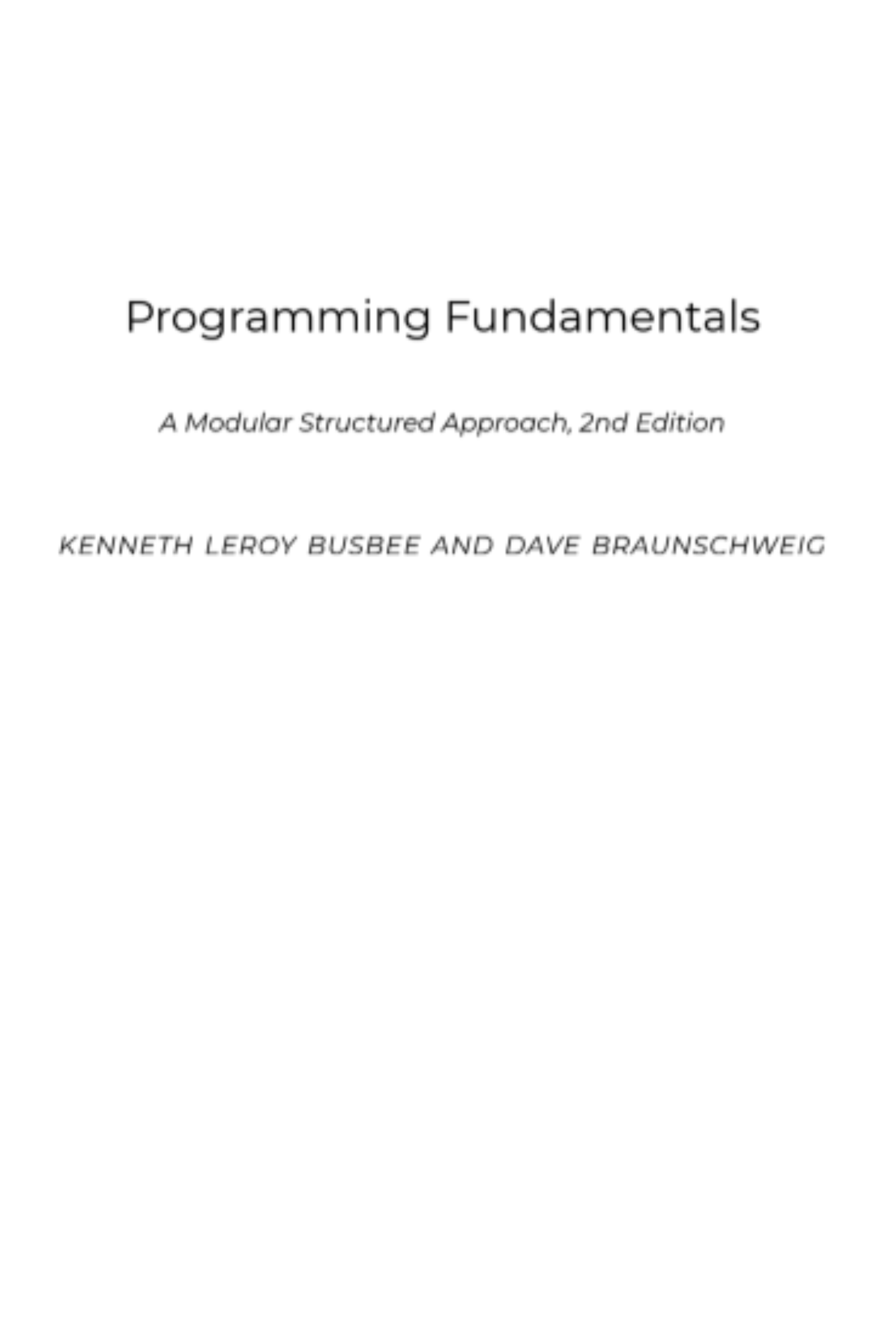 Programming Fundamentals A Modular Structured Approach, 2nd Edition