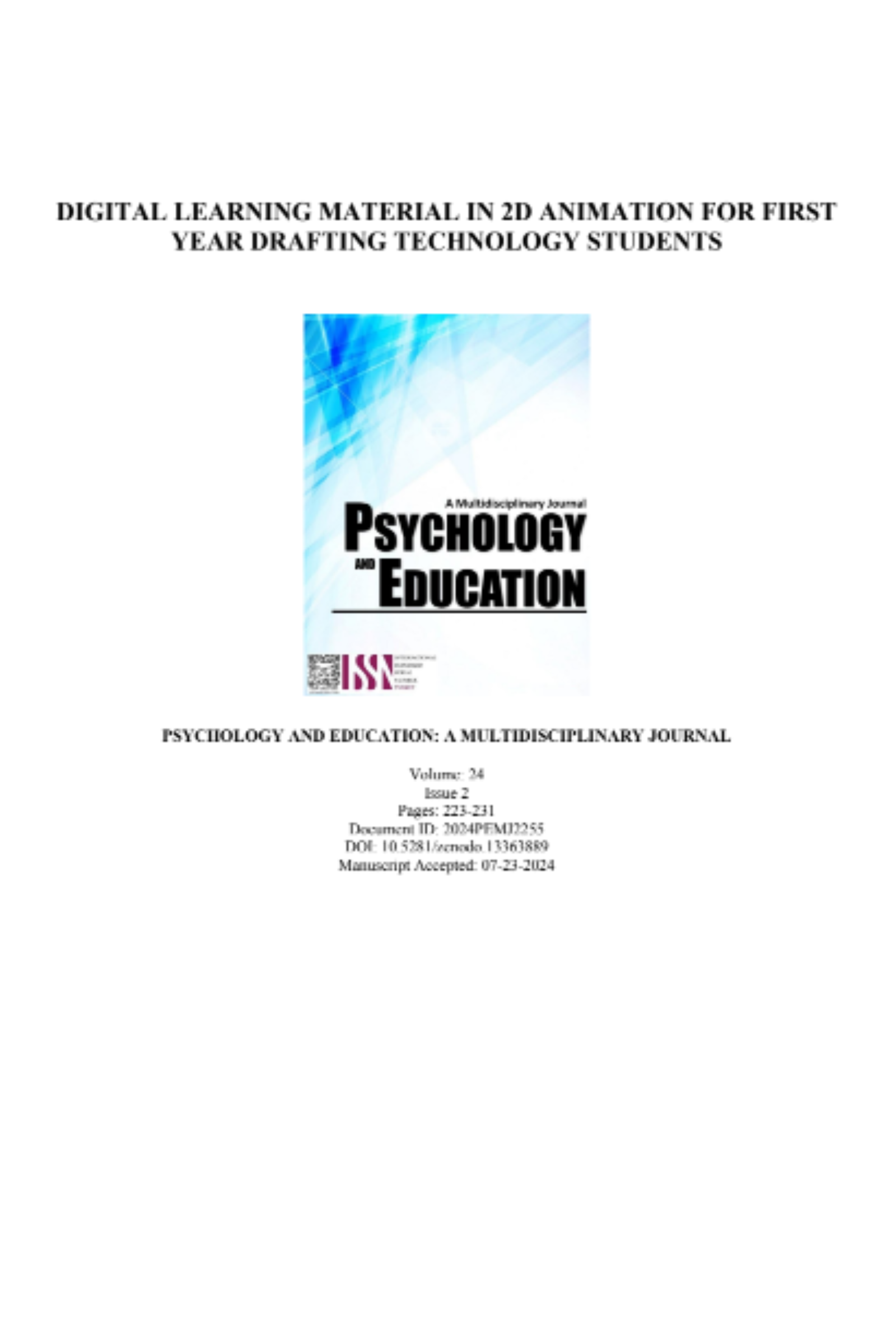 Digital Learning Material in 2D Animation for First Year Drafting Technology Students