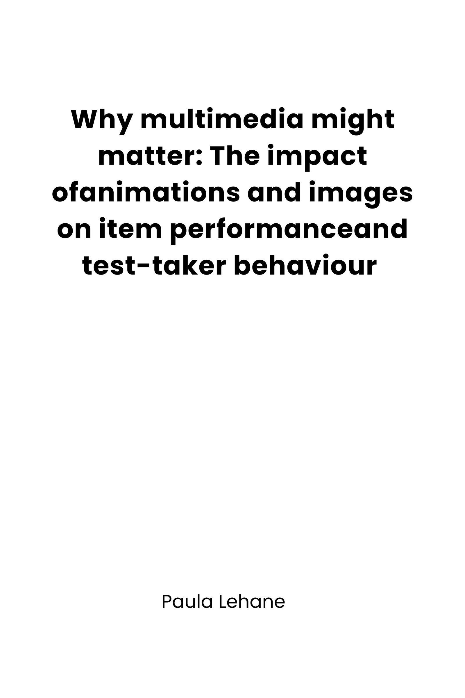 Why multimedia might matter: The impact ofanimations and images on item performanceand test-taker behaviour